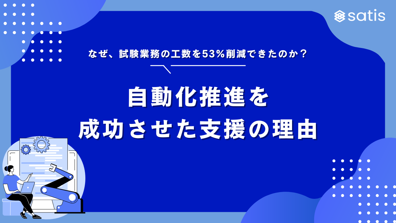 これらの状況からお客様より、現在は定型化されているが自動化できていない試験業務を洗い出し、自動化の導入によって品質担保とコスト(人的工数)の最小化(最適化)を図りたいとの要望を受け、サティスが解決のために支援させていただくことになりました。